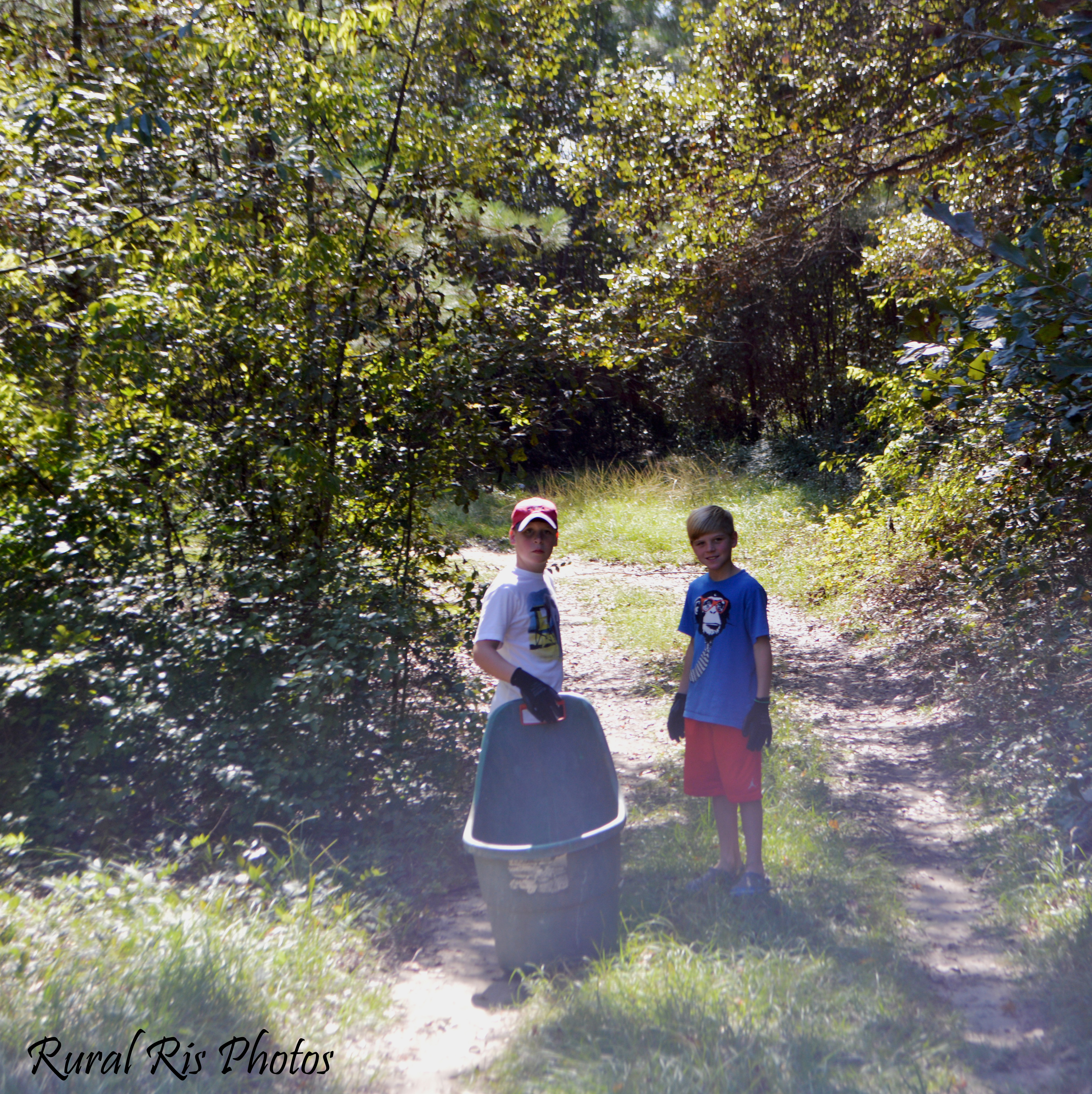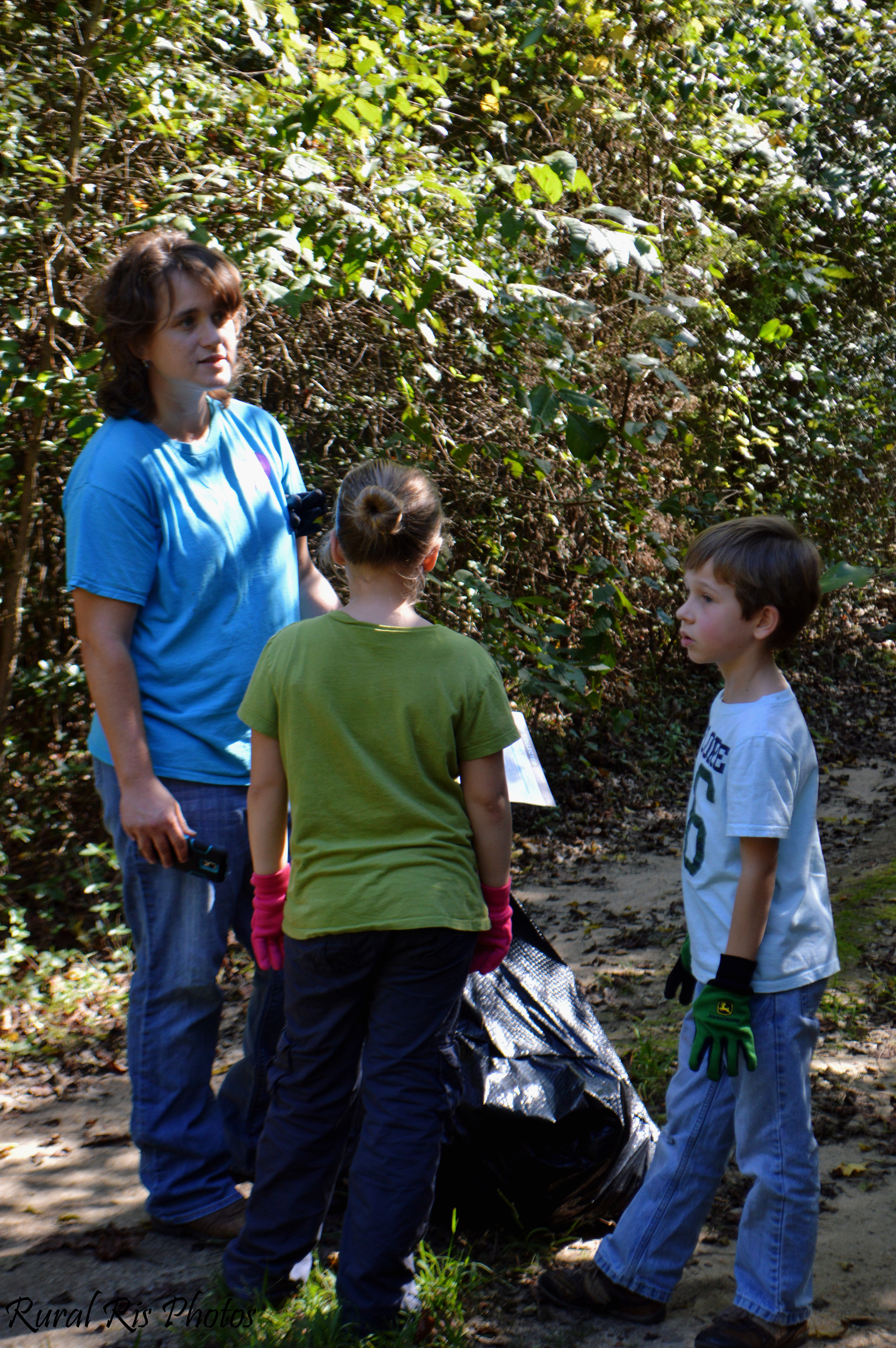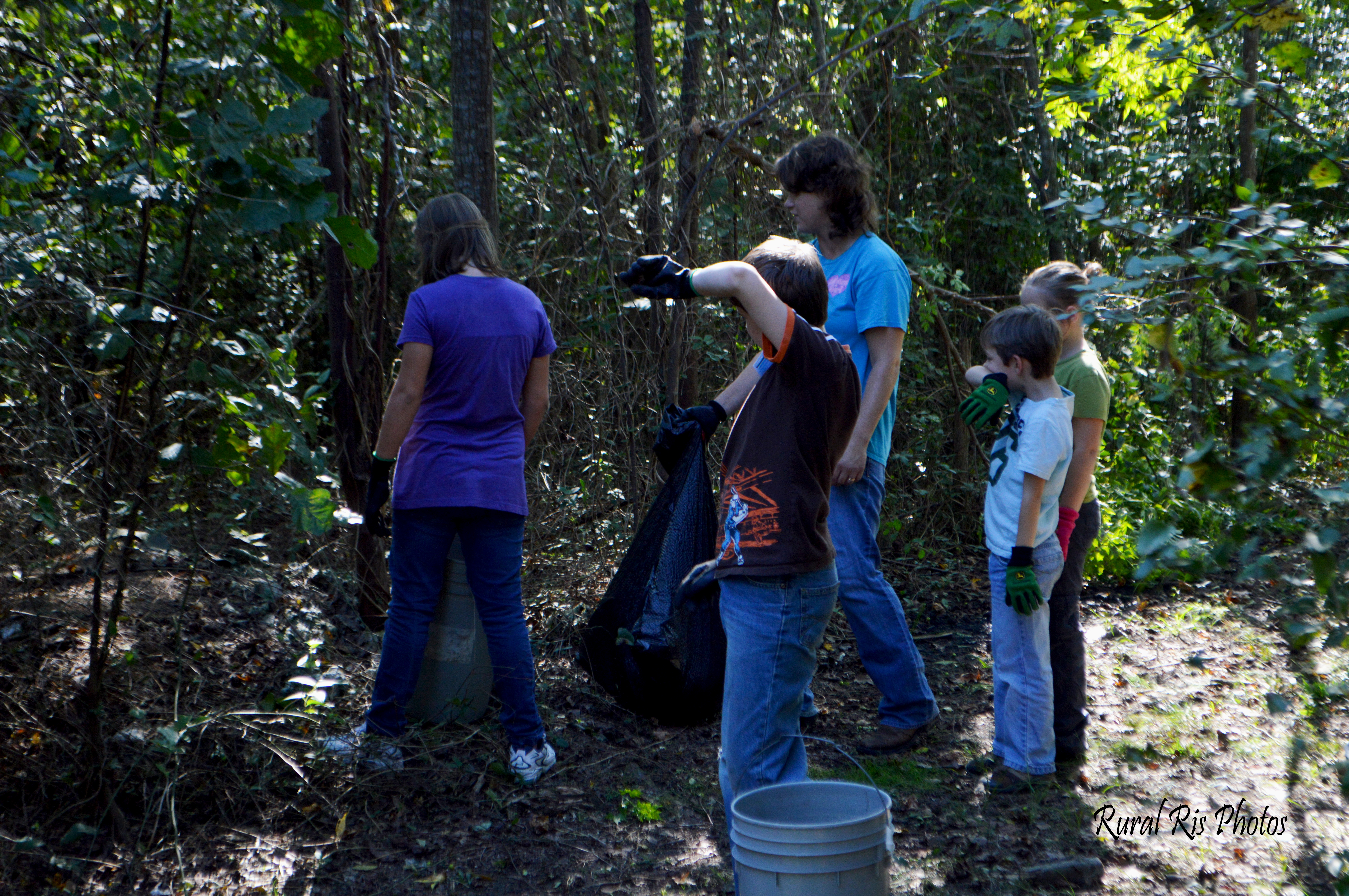 Everyone was such good sports too. The kids actually loved hunting for litter and seeing what they could find. Into the woods they would go, and run out, excited about the virtual living room set they just found.