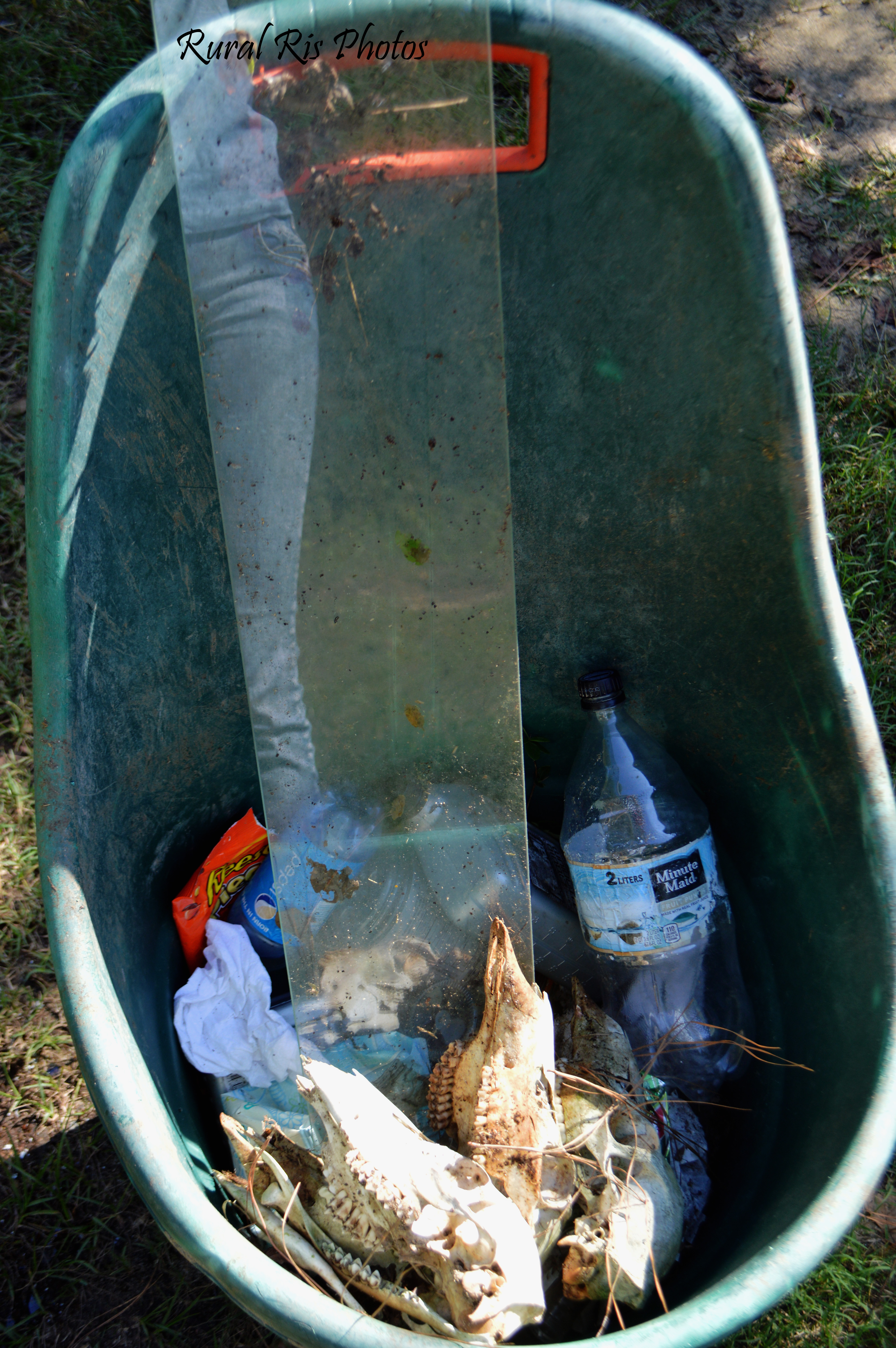 We ended up finding 3 televisions, 1 recliners, a ton of carpet, a nightstand, 12 deer skeletons, like a thousand bottles, a lawn chair, and a host of other things.